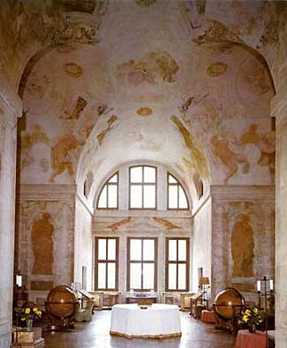 Комнаты, хоть и нарочито неуютны, сверху до низу расписаны фресками. Фрески эти тоже далеки от дачной камерности: среди них, звенящих как кимвалы, не отдохнёшь. Сегодня краски приглушены временем, но, несмотря на это, комнаты по-прежнему более подходят для официального приёма, нежели для мирных дачных будней. Фрески в старину использовались и для учёного времяпрепровождения: эрудированный хозяин дома охотно комментировал гостям их скрытый назидательный смысл. По смыслу же эта живопись аккуратно согласуется с аристократической идейностью архитектуры. Не сама она, для строгого вкуса несколько разухабистая, - показные титанические потуги ренессансных культуристов с их полетами вверх тормашками, - но её иконография.